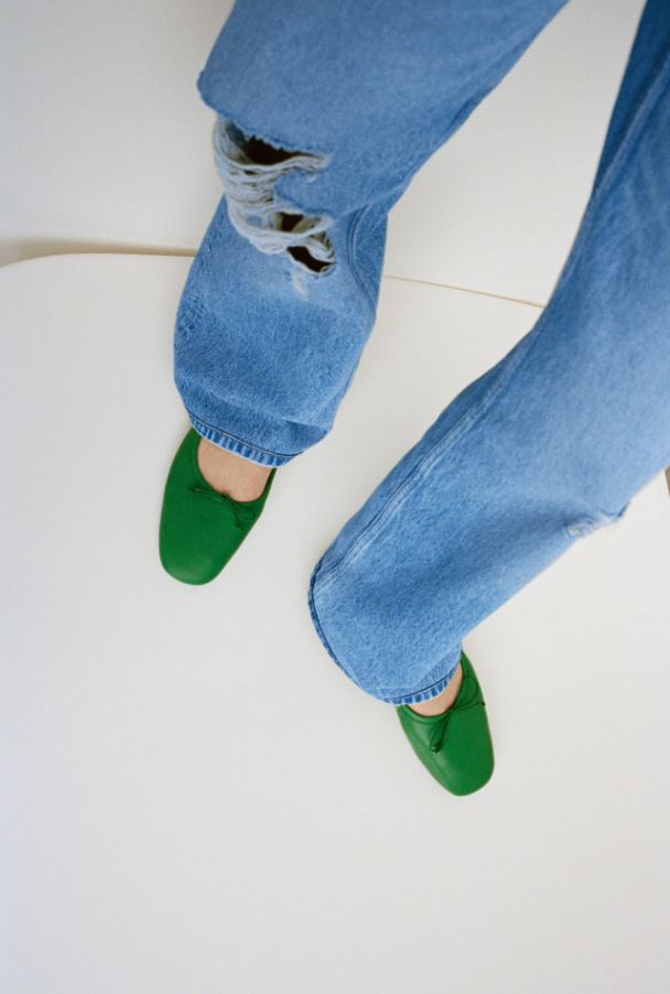 Но нет, это совсем не те модели, что мы когда-то носили (и тихо ненавидели) в школе. Теперь дизайнеры делают ставки на квадратный или, наоборот, острый мыс, а еще предлагают носить кожаные и стеганые варианты или золотые, как на показе Simone Rocha. Ну а нам понравились яркие балетки. Мы уже добавили в вишлист зеленые из коллекции Zara.