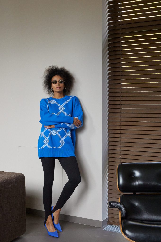 В капсулу Pattern вошли мягкие кардиганы ярких осенних цветов с абстрактным узором и джемперы в трендовых зеленой и синей палитрах.