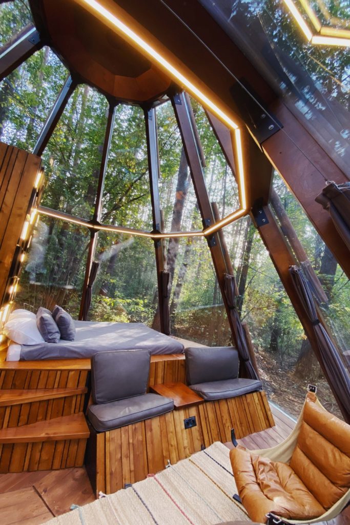 Для тех, кто не знает, глэмпинг – дословно «гламурный кемпинг» (тот же отдых на природе, но в условиях полного комфорта). Нет, это не просто отель в лесу, это настоящая палатка со всеми городскими удобствами.