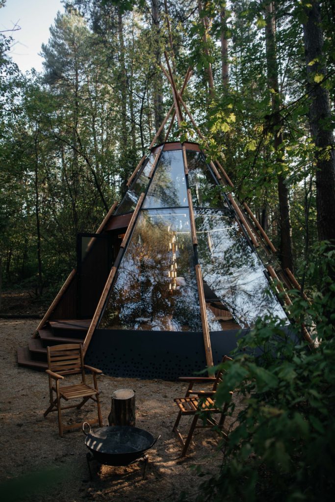 Лесной отель рядом с родниковым озером в Карелии. Здесь на выбор представлено сразу несколько вариантов: от настоящих индейских типи до небольших домиков с панорамными окнами и крытой террасой. Кроме того, есть кафе, зона для барбекю, карельская баня и специальная площадка с настольными играми, книгами и музыкальными инструментами. Кстати, для именинников есть приятные скидки.
