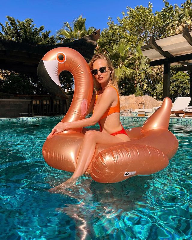 Когда, если не летом? Где, если не у бассейна? С кем, если не с надувным другом? Посмотри, насколько по-разному можно использовать пляжные аксессуары, чтобы подчеркнуть достоинства фигуры. Наталья Ионова, например, показывает подтянутый живот, изящный изгиб спины и тонкую талию. А заодно и часть ноги, по которой можно сразу определить, что Глюкоза знает на «ты» тренажеры в спортзале. Хейли Бибер делает ставку на вид сзади: даже в этом ракурсе очевидно, что у девушки тонкая талия. К ягодицам тоже не придраться – не пошло, но при этом достаточно смело.