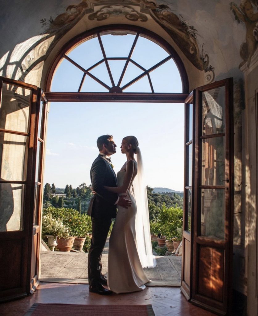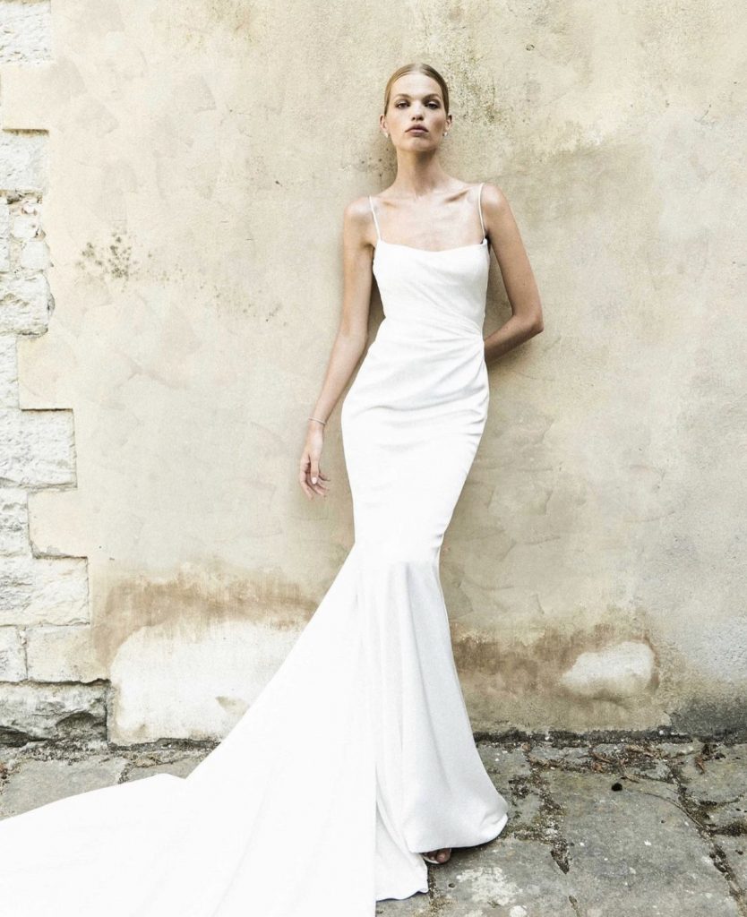 27-летняя нидерландская модель Дафна Груневельд вышла замуж за специалиста по элитной недвижимости Джастина Хопвуда. Для торжества невеста выбрала силуэтное платье на тонких бретельках со шлейфом от Galia Lahav.