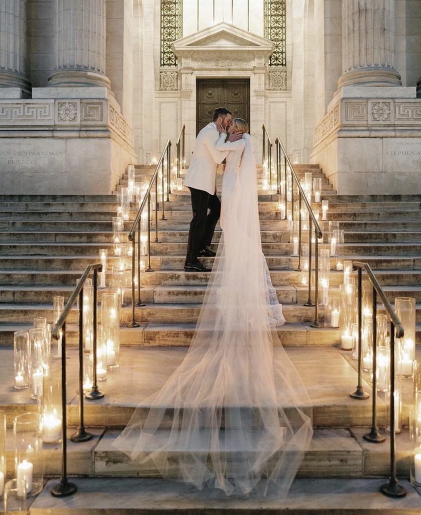 Этим летом Кейт Бок вышла замуж за баскеболиста Кевина Лава в платье Ralph Lauren. А свадьба прошла в Нью-Йоркской публичной библиотеке.