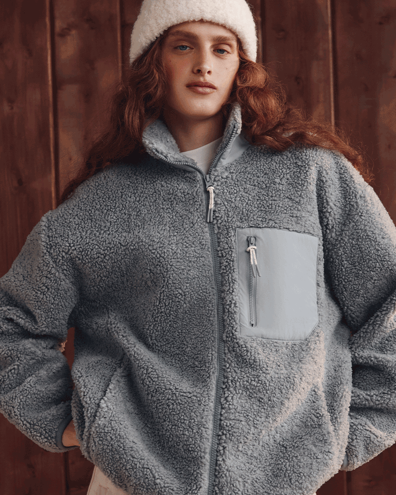 В капсуле après-ski дизайнерская команда belle you сделала ставку на тактильно приятные, теплые материалы и свободные силуэты, чтобы ничто не мешало активно проводить время на свежем воздухе. Так, следующей знаковой моделью коллекции стала уютная куртка из шерпы в сером цвете и с накладным карманом из плащевой ткани. Кстати, этот искусственный мех хорошо греет и обеспечивает высокую теплоизоляцию. Сверху шерпа бондированна флисом – именно он придает куртке плюшевость, за счет чего образ кажется мягким и уютным. Стилизовать ее можно со свитшотами из той же коллекции, худи на молнии или лонгсливами.