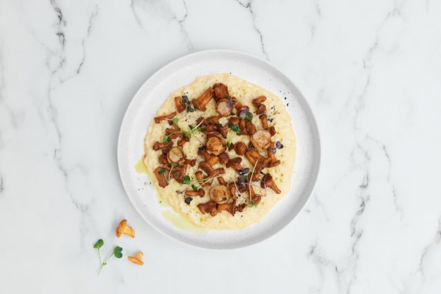 В ресторане решили приспособить подмосковные лисички к итальянской кухне. Их добавили к сливочному ризотто с морским гребешком и тремя видами масла — трюфельным, оливковым и чесночным. И к пасте тальятелле домашней лепки со свежим шпинатом и трюфельным маслом. Конечно, ни одно из этих блюд не обошлось без пармезана: грибы и сыр отлично дополняют друг друга.