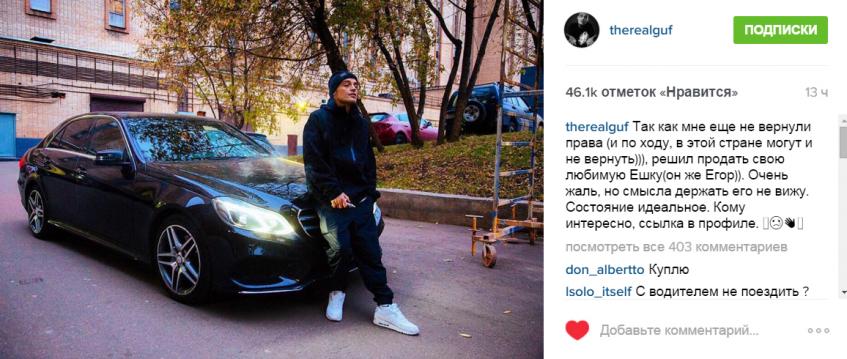 Объявление о продаже своего «Мерседеса» E-класса, которого музыкант нежно окрестил «Ешка» или «Егор», Алексей разместил в своем Instagram, сопроводив фото автомобиля трогательным комментарием: «Так как мне еще не вернули права (и по ходу, в этой стране могут и не вернуть))), решил продать свою любимую Ешку(он же Егор)). Очень жаль, но смысла держать его не вижу. Состояние идеальное»».