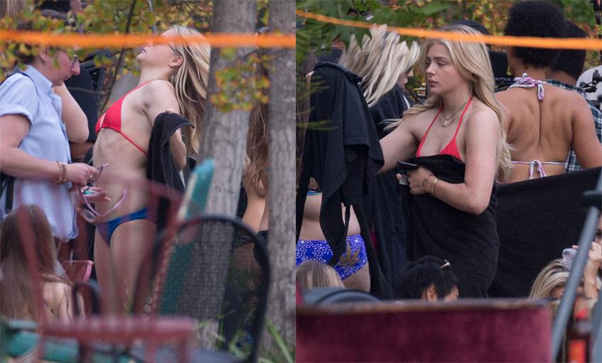 Несмотря на то, что в Лос-Анджелесе уже начинают желтеть листья, Хлоя разделась перед камерой. Судя по всему, героиня актрисы и ее подруги из университетского общества решили позагорать. И Хлое есть чем похвастаться. Девушка появилась перед объективами в бикини с красным верхом и синим низом.