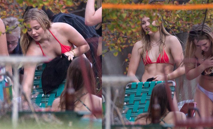 Несмотря на то, что в Лос-Анджелесе уже начинают желтеть листья, Хлоя разделась перед камерой. Судя по всему, героиня актрисы и ее подруги из университетского общества решили позагорать. И Хлое есть чем похвастаться. Девушка появилась перед объективами в бикини с красным верхом и синим низом.