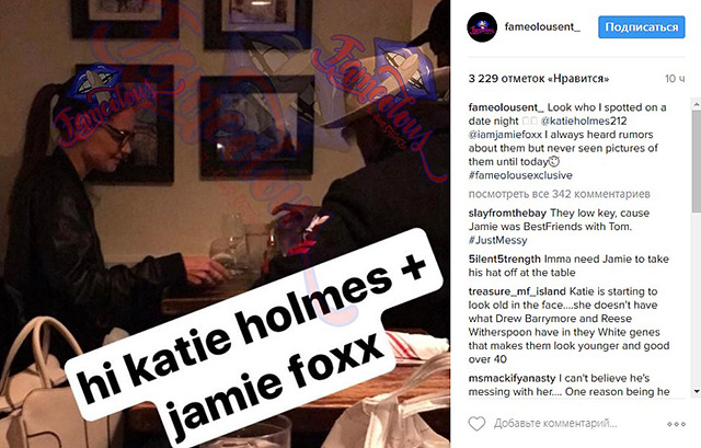 Как бы ни старались Кэти Холмс (38) и Джейми Фокс (49) скрывать свои отношения от посторонних глаз, делать им это не удается. То подруга Джейми, актриса Клаудиа Джордан, расскажет на всю Америку, что Джейми влюблен в бывшую жену Тома Круза (54) («Он очень счастлив с Кэти. Мне нравится видеть его таким»), то инсайдеры поделятся, что влюбленные уже готовятся к свадьбе. Да и иногда их все-таки видят вместе. А недавно Холмс и Фокса сфотографировали во время их романтического ужина в Нью-Йорке.