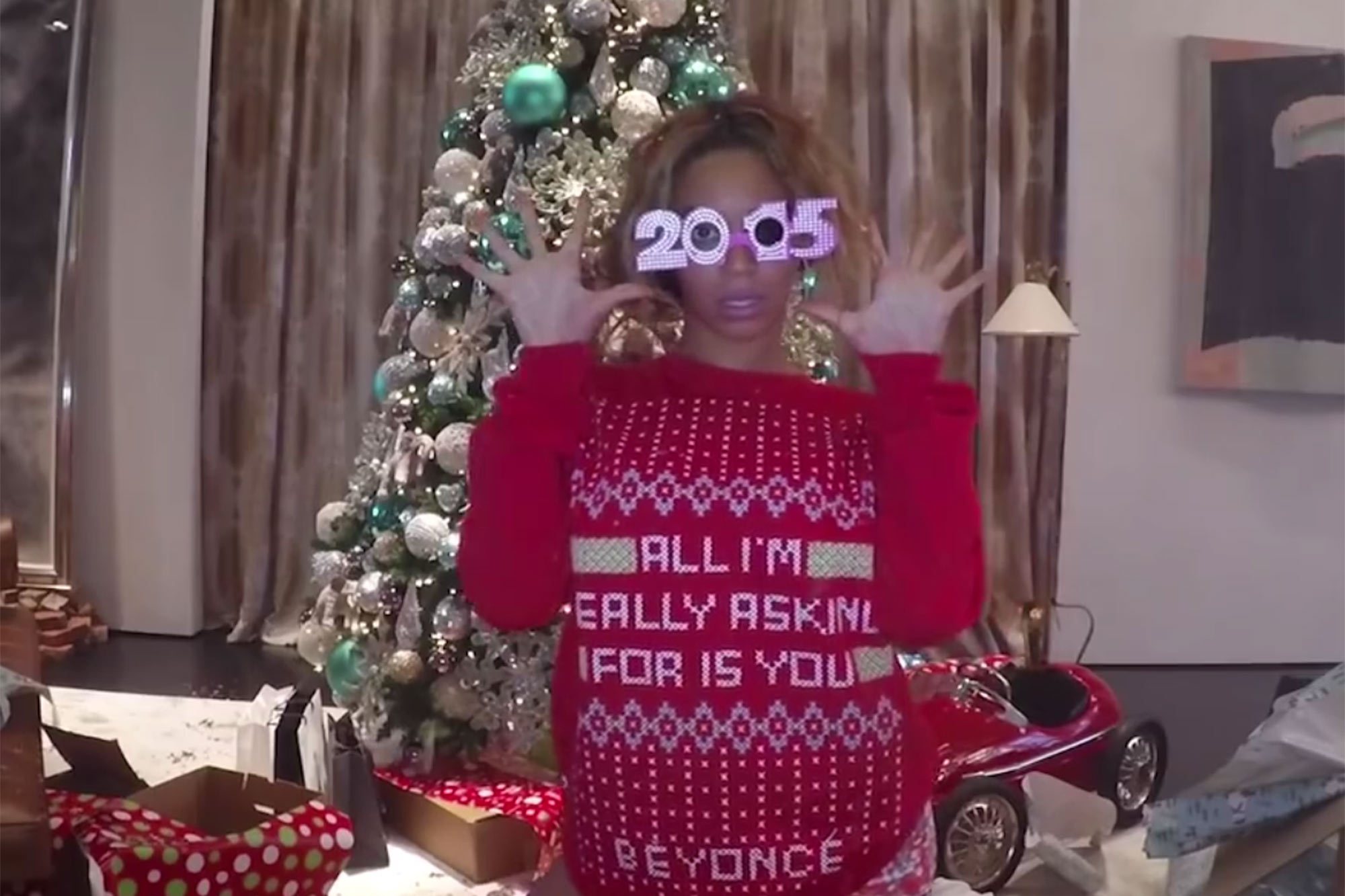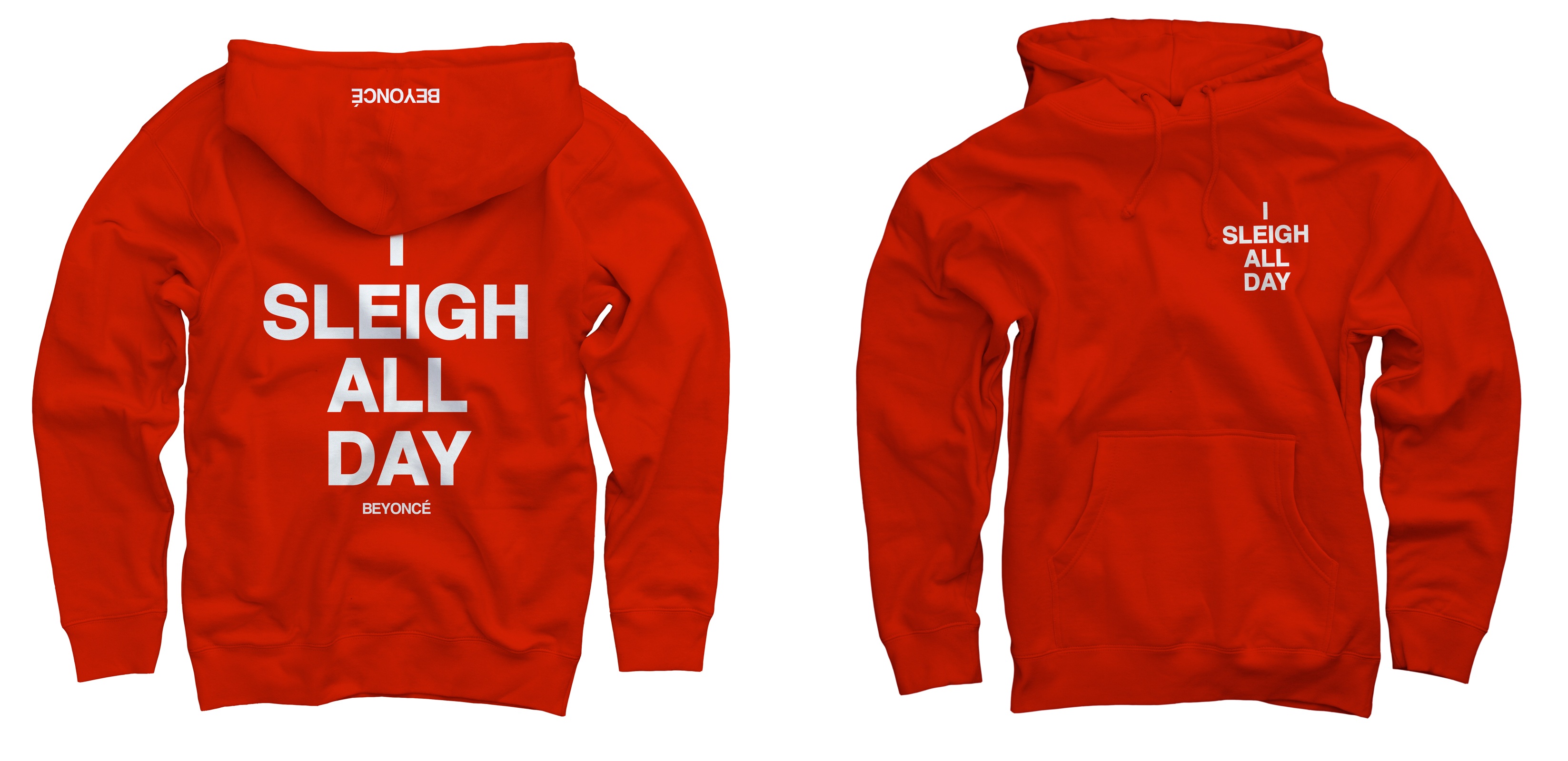 Время идет, а в голову Би приходят все новые идеи в поддержку альбома: в этом году певица выпустила толстовки с надписью I Sleigh All Day (Я катаюсь на санках целый день). А еще топ с рождественским носком, заполненным лимонами.