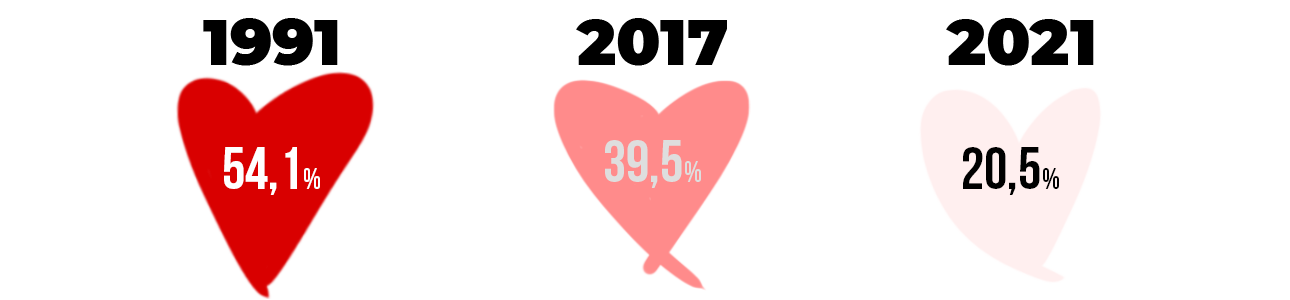 Зумеров называют одним из самых ханжеских поколений за последние столетия. А в социальных сетях для них даже придумали термин puriteen, который характеризует современных подростков как людей, чувствующих себя некомфортно из-за количества сексуального контента в Сети. Западные социологи во весь голос утверждают, что молодое поколение совсем перестало интересоваться сексом. К примеру, еще в 1991 году 54,1 % старшеклассников уже имели сексуальный опыт, причем 37,5 % из них – регулярный, а в 2021-м эти показатели снизились до 20,5 и 14,7 % соответственно. Конечно, можно сказать, что виной тому стали пандемия и самоизоляция, но показатели в 2017 году были ненамного выше.