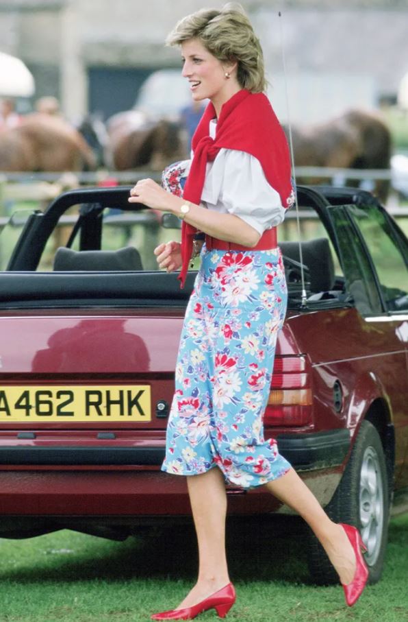 Леди Ди доказывает: джемпер может быть не только основной частью образа, но и аксессуаром. Например, аутфит с юбкой с цветочным принтом и белой футболкой Диана дополняла небрежно завязанным красным свитером. Кстати, сейчас такой прием используют чуть ли не все модные блогеры.