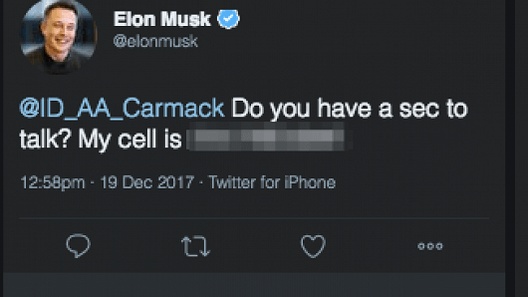 Вчера Илон Маск (46) ответил в «Твиттере» главному инженеру компании Oculus Джону Кармаку: «Есть секунда? Надо поговорить. Вот мой номер: …»!