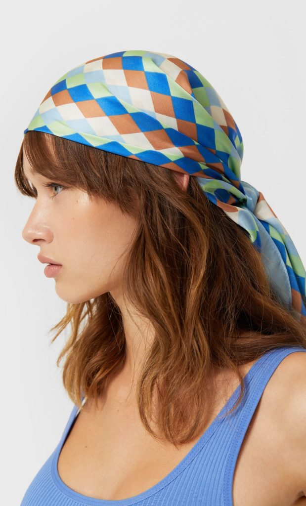 Помнишь, как прошлым летом все сходили с ума по нейлоновым панамам, как в коллекции Prada? В этом сезоне им на смену пришли шелковые платки, которые fashion-блогеры носят в лучших традициях нулевых: с мини-юбками, кроп-топами в технике кроше и с брюками на низкой талии.