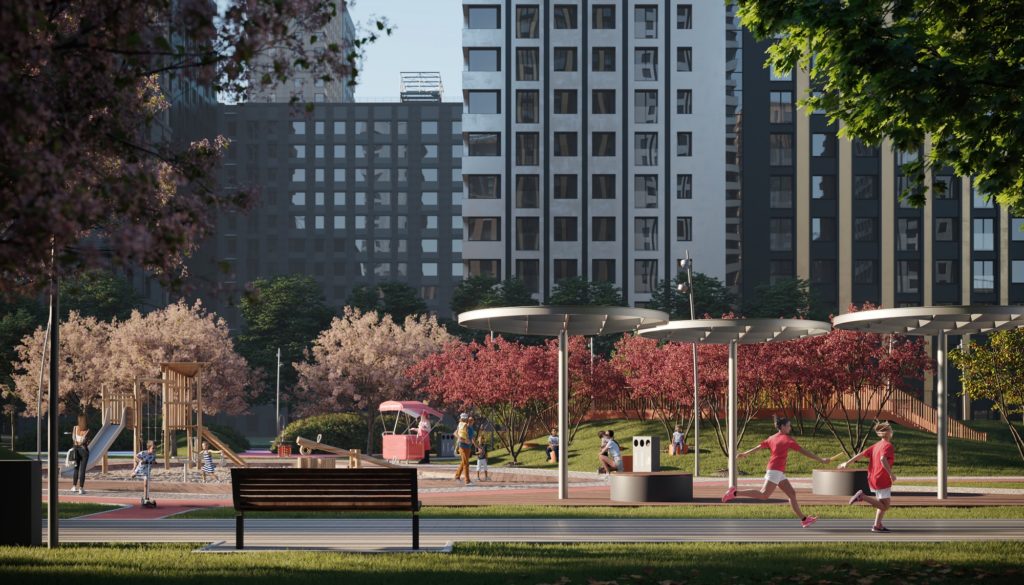 Восемь гектаров зелени, спортивные площадки, цветники, детские зоны и маршруты на любой случай (для тех, кто гуляет с ребенком, или тех, кто опаздывает на встречу) – в центре кварталов balance парк с продуманным освещением, комфортной уличной мебелью, дорожками для велосипедистов и бегунов, полянами для игр, кафе и фонтанами!