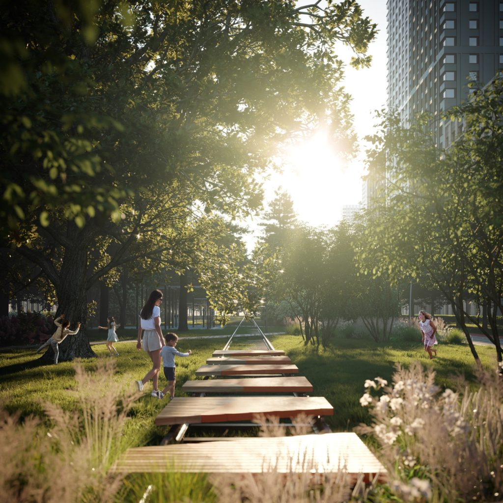 Кстати, идея для нового крутого фото: раньше по территории ЖК проходила железная дорога, и рельсы от нее до сих пор на месте, только теперь между ними растут цветы и деревья. Да, за креативным постом в Instagram достаточно выйти во двор своего дома.