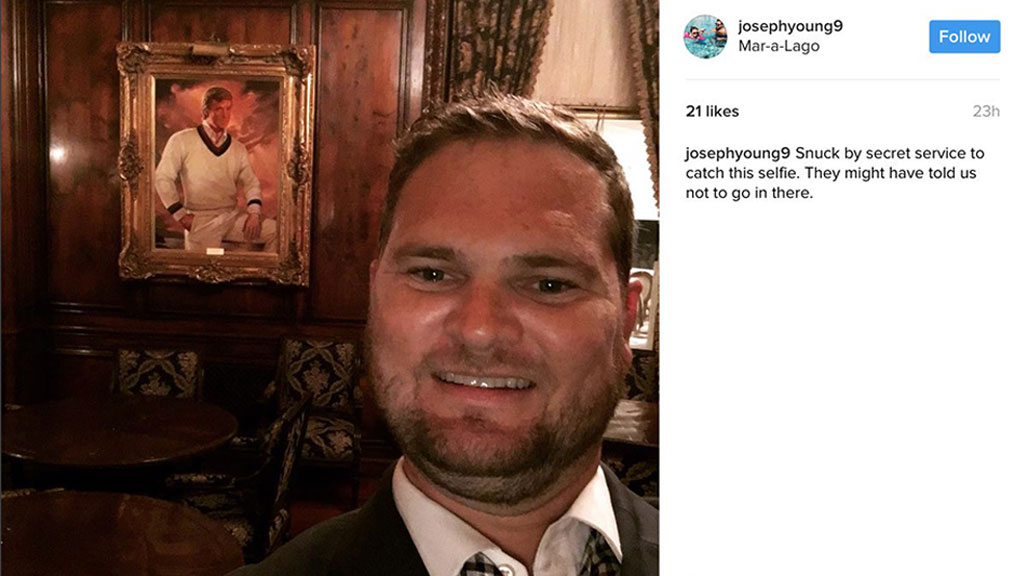 Американец Джозеф Янг проник в личный кабинет резиденции Президента США, чтобы сделать селфи с фотографией молодого Дональда Трампа. Мужчина обошел Секретную службу охраны поместья «Мар-а-Лаго» в Палм-Бич не просто опубликовал полученное фото в Instagram, но и обвинил секьюрити Президента в халатности. Об этом сообщили на сайте газеты The New York Post.