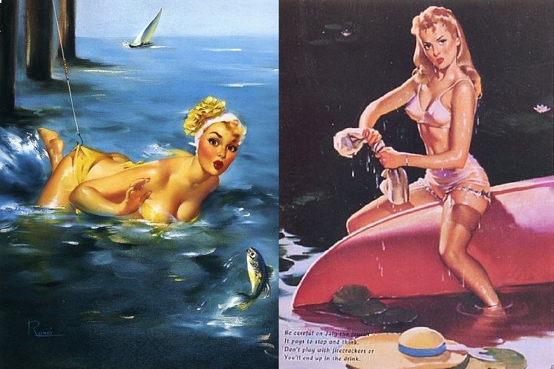 Изначально негласные законы жанра пин-ап требовали демонстрировать обнаженную грудь только намеком. Эротика проявлялась как бы случайно. Но в 50-х годах самые отважные художники все же решили изобразить обнаженную грудь, и пин-ап стал ассоциироваться с откровенной сексуальностью.