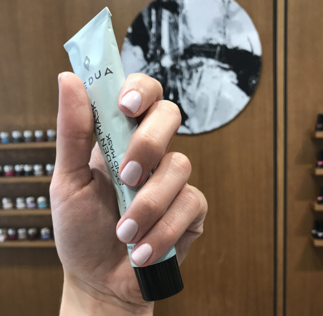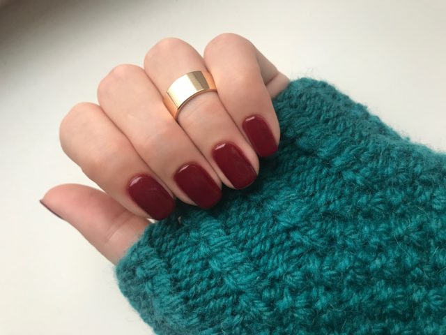 Я обычно выбираю нюд или черный цвет, но, начитавшись обзоров бьюти-редактора про осенние винные тренды, выбрала Posh Rouge (красный с легким малиновым подтоном). И гель-лак, и базу попросила Fedua – у меня он держится лучше других, а главное – его гораздо проще снимать, не травмируя ногти. Маникюр делали в Beauty Bistro – и мне очень понравилось: в салоне чисто (у меня пунктик на эту тему), маникюр сделали очень быстро (и именно ту форму, которую я хотела), а пока мастер делала массаж рук, мне окрасили брови, и я сэкономила кучу времени.