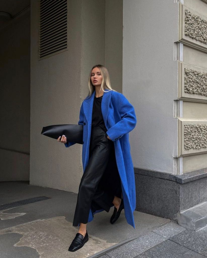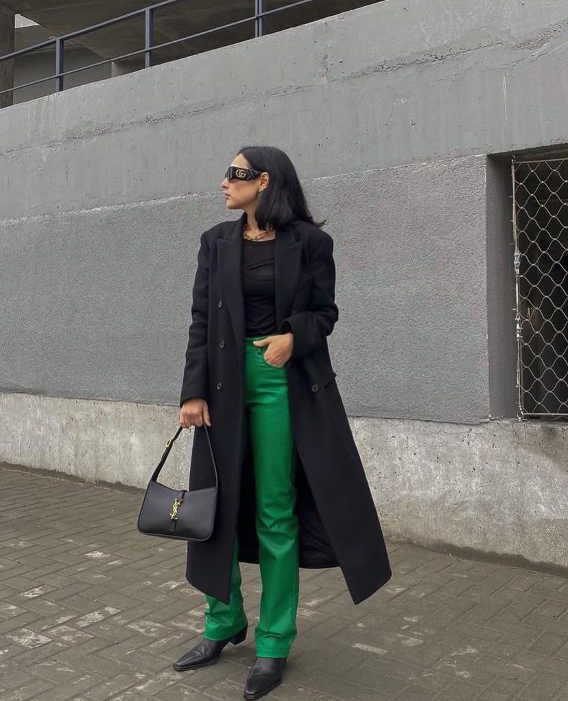 Знаем, что зимой все привыкли носить широкие джинсы или черные кожаные брюки, но этот элемент гардероб тоже имеет право быть ярким. Fashion-блогеры предлагают носить брюки в актуальных синих и зеленых оттенках и стилизовать их с черным цветом. А ваш редактор моды советует обратить внимание и на коричневую палитру — еще один тренд этого сезона.