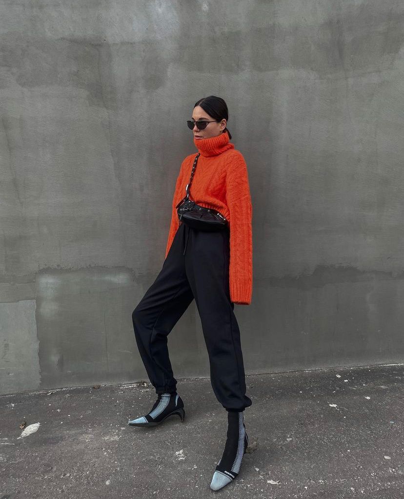 И как оставить без внимания самый важный тренд сезона FW 21/22? Это зимой трикотаж окончательно закрепил позиции на модной арене, появившись почти в каждой коллекции мировых брендов. Выбирай вязаные жилеты, оверсайз кардиганы и джемперы с растянутыми рукавами и не бойся цветовых экспериментов. Например, красный свитер с разрезами сочетай с дутым бомбером и джинсами в белом цвете, а укороченную модель в оранжевом цвете с черными костюмными брюками.
