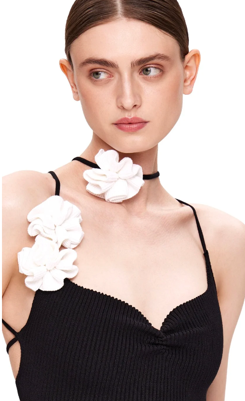 Тренд на цветы с каждым днем только набирает обороты. В прошлом году розы превратились в каблуки туфель Loewe, а в этом – украсили платья Coperni. Кутюрная Неделя моды в Париже закрепила за цветами звание самого актуального декора сезона. Отсылки к природе в той или иной форме появлялись на шоу Schiaparelli, Yanina Couture, Elie Saab, Giambattista Valli и Dolce & Gabbana. А вот на фотографии слева ты можешь увидеть свадебный образ Хлои Севиньи – невеста использовала цветы в качестве аксессуара для волос. Такой прием ты тоже можешь взять на заметку.