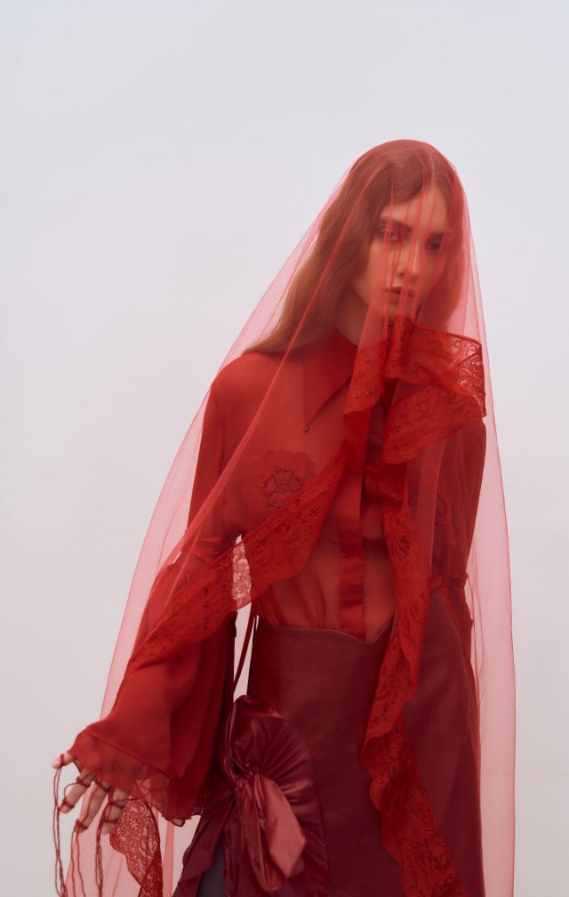 Фата – настоящая свадебная классика. Этот аксессуар запросто дополнит любой образ и придаст ему нужный настрой. Кстати, не стоит думать, что фату нужно обязательно носить в дуэте с пышным платьем с кружевами, она будет выигрышно смотреться и с минималистичной комбинацией, и с экстремальным мини (бери пример с Кортни Кардашьян). И кто сказал, что фата обязательно должна быть белой? В коллекции российского бренда Playgoer мы нашли идеальный вариант алого цвета.