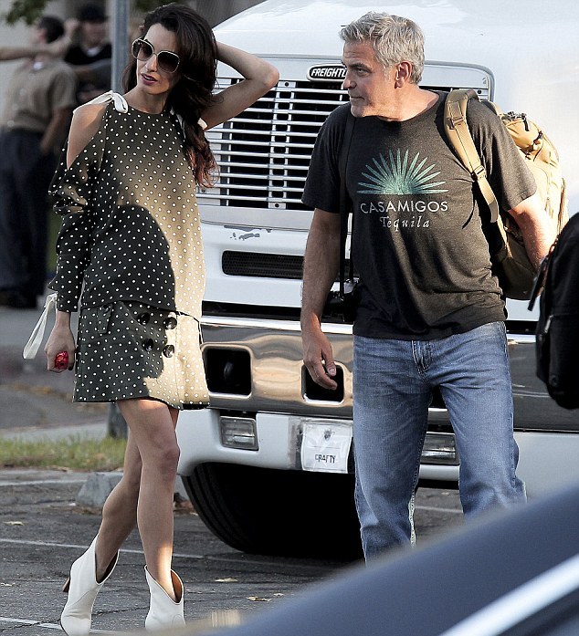 Она, как всегда, выглядела элегантно, а вот Клуни, кажется, немного поправился, правда, выглядел счастливым. В перерыве между съемками они долго разговаривали и смеялись, но вскоре Амаль снова уехала по делам.