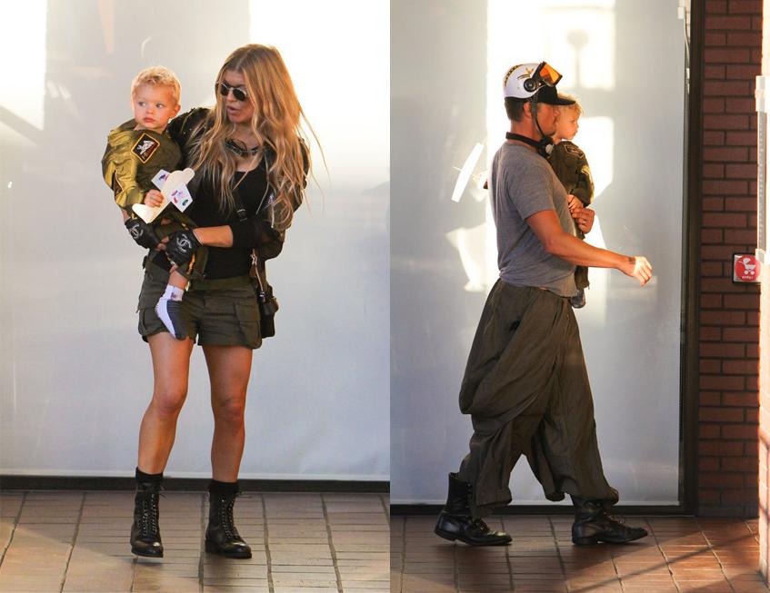Об этом можно судить по тому, как были одеты виновник торжества и его родители. Эксл Джек, наряженный в трогательный комбинезон летчика ВВС, был замечен папарацци, когда его несла на руках счастливая Ферги, одетая под стать сыну: короткие оливковые шорты с широкими карманами, черная майка и авиационная куртка, а в качестве аксессуаров певица выбрала авиационные очки, перчатки с обрезанными пальцами и круглые солнцезащитные очки.