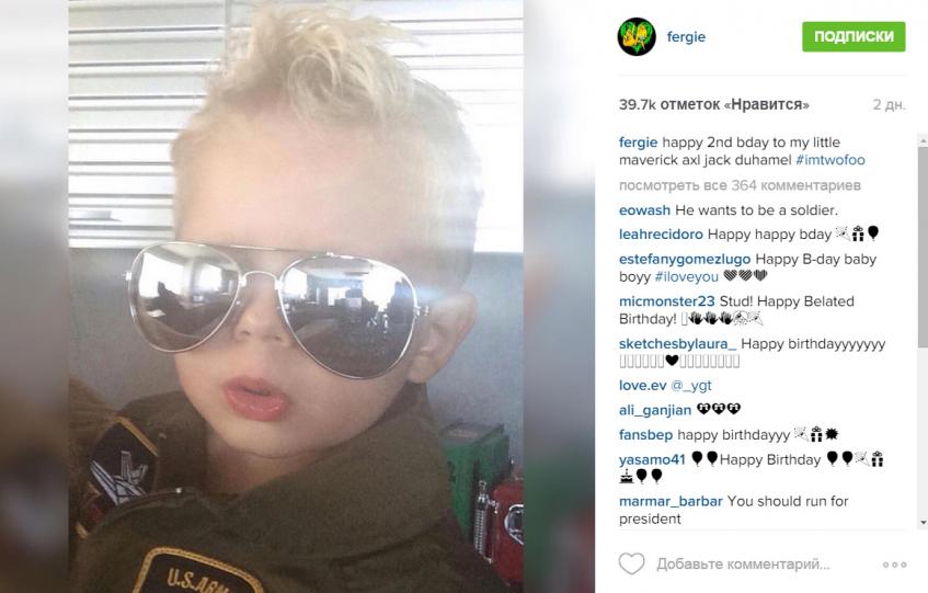 Об этом можно судить по тому, как были одеты виновник торжества и его родители. Эксл Джек, наряженный в трогательный комбинезон летчика ВВС, был замечен папарацци, когда его несла на руках счастливая Ферги, одетая под стать сыну: короткие оливковые шорты с широкими карманами, черная майка и авиационная куртка, а в качестве аксессуаров певица выбрала авиационные очки, перчатки с обрезанными пальцами и круглые солнцезащитные очки.