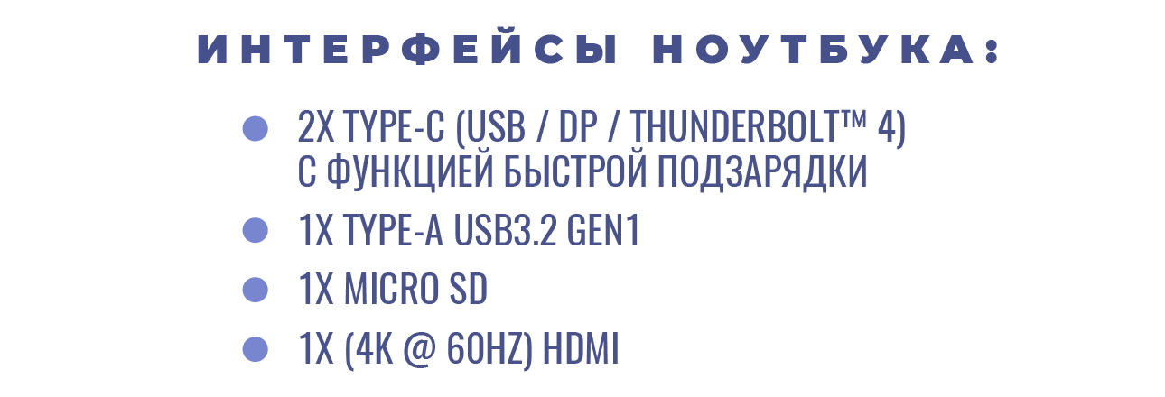 Комьютер очень компактный, у него минимальные габариты: 300.2 x 222.25 (ширина), 14.9 мм (толщина). Вес девайса всего лишь 1,35кг – поместится в любую сумочку. В ноутбук встроена видеокарта Intel® Iris® Xe – она запросто потянет обработку любого контента в сложных графических программах, зарендерит видео в считанные секунды и не будет виснуть при работе с большим количеством программ или вкладок.