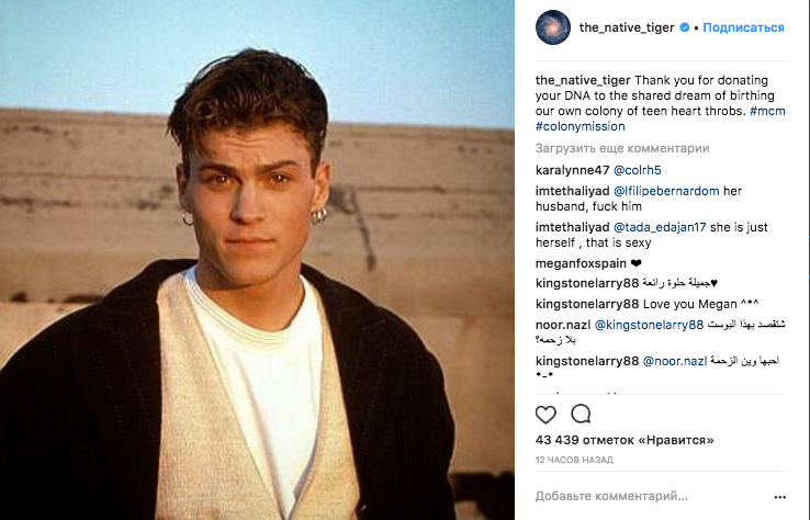 «Спасибо тебе за то, что дал свою ДНК для воплощения нашей мечты о собственной колонии и подростковых идолов», — вот так подписала фото молодого Брайана Остина (44) его супруга, актриса Меган Фокс (31).