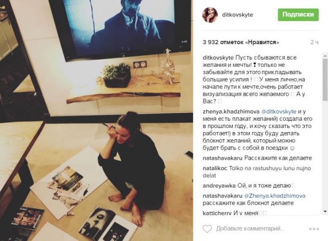 Если одного списка для мотивации недостаточно, визуализируй свои желания. Сделай коллаж — наклей на него красивую машину, роскошного парня с идеальным прессом и другие желания. Так, кстати, поступают многие звезды. Актриса Агния Дитковските, например.