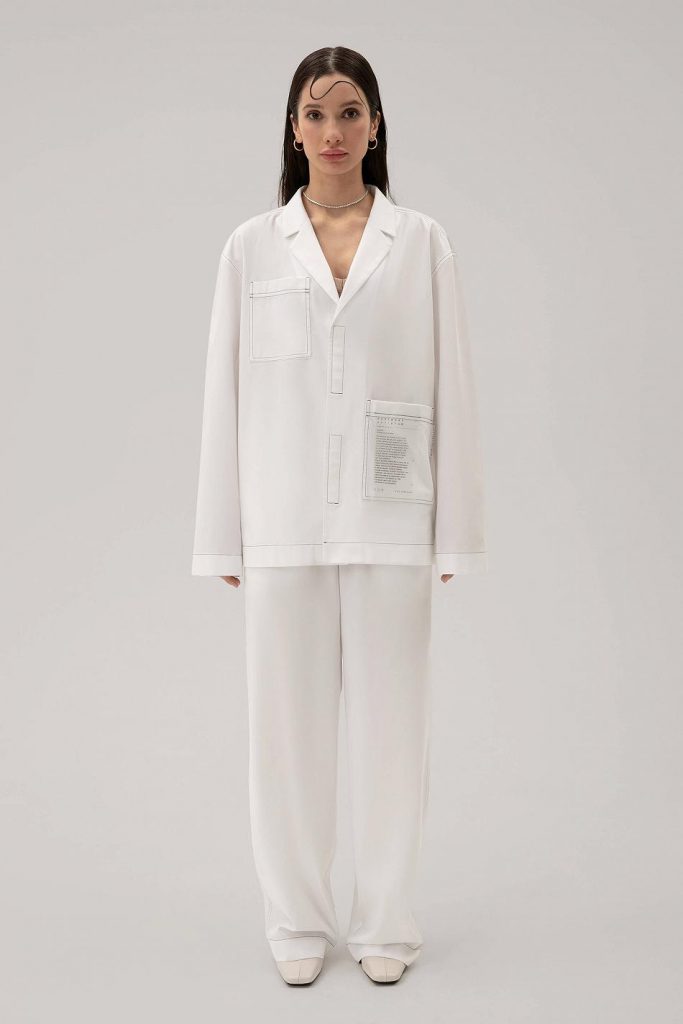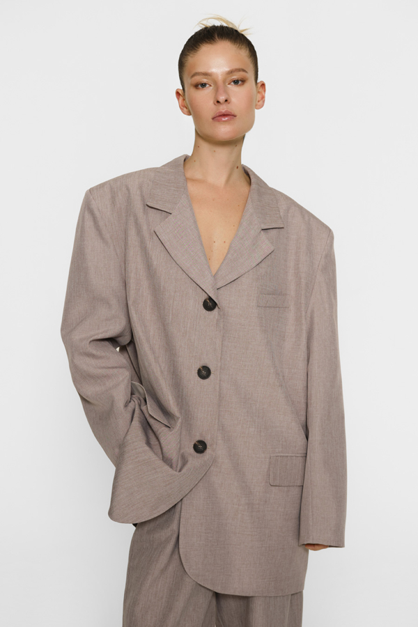 Питерский стилист и блогер Salavat Kypere этим образом как бы намекает, что стесняться в принципе не стоит. Поэтому смело покупай костюм и носи его на голое тело. Но, если к таким экспериментам ты пока не готова, под пиджак можно надеть топ-бандо. Образ можно дополнить как кедами, так и мюлями или клогами.