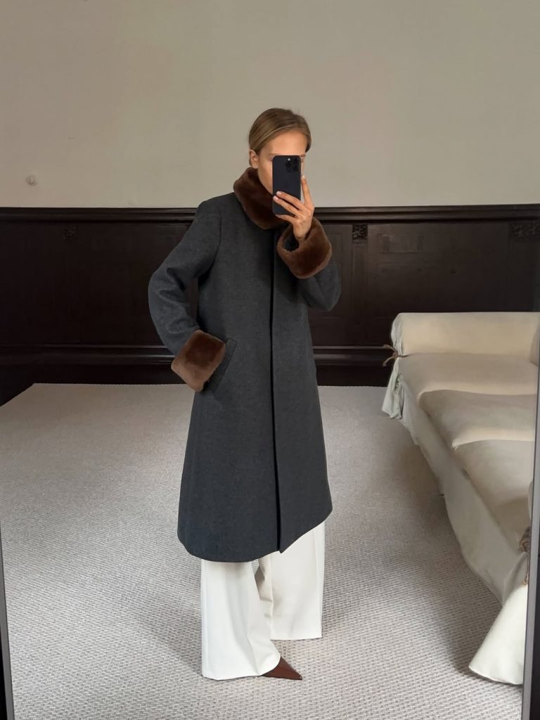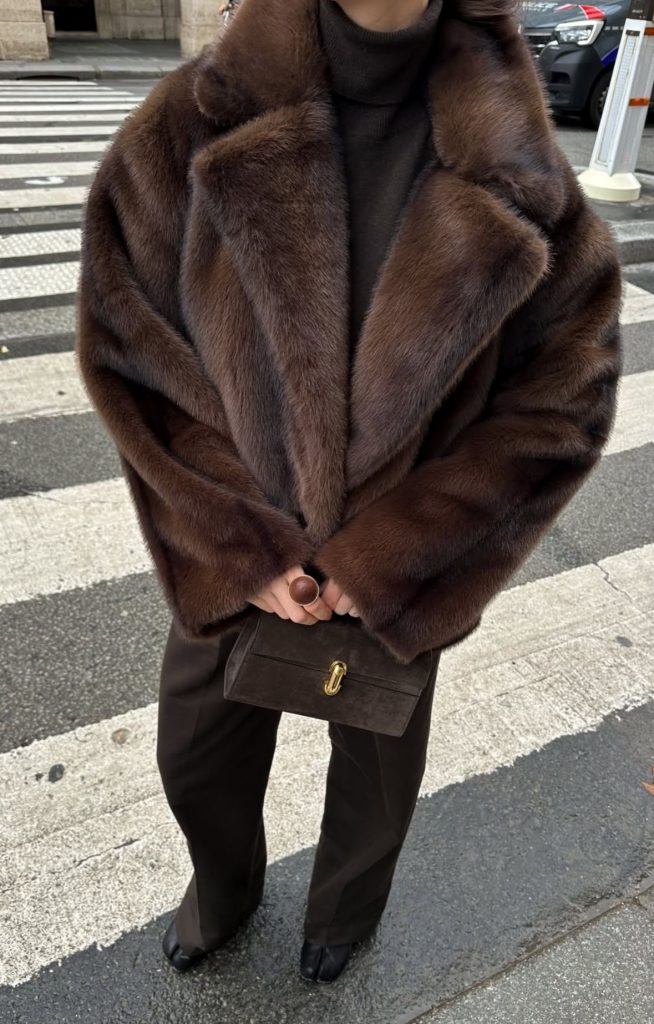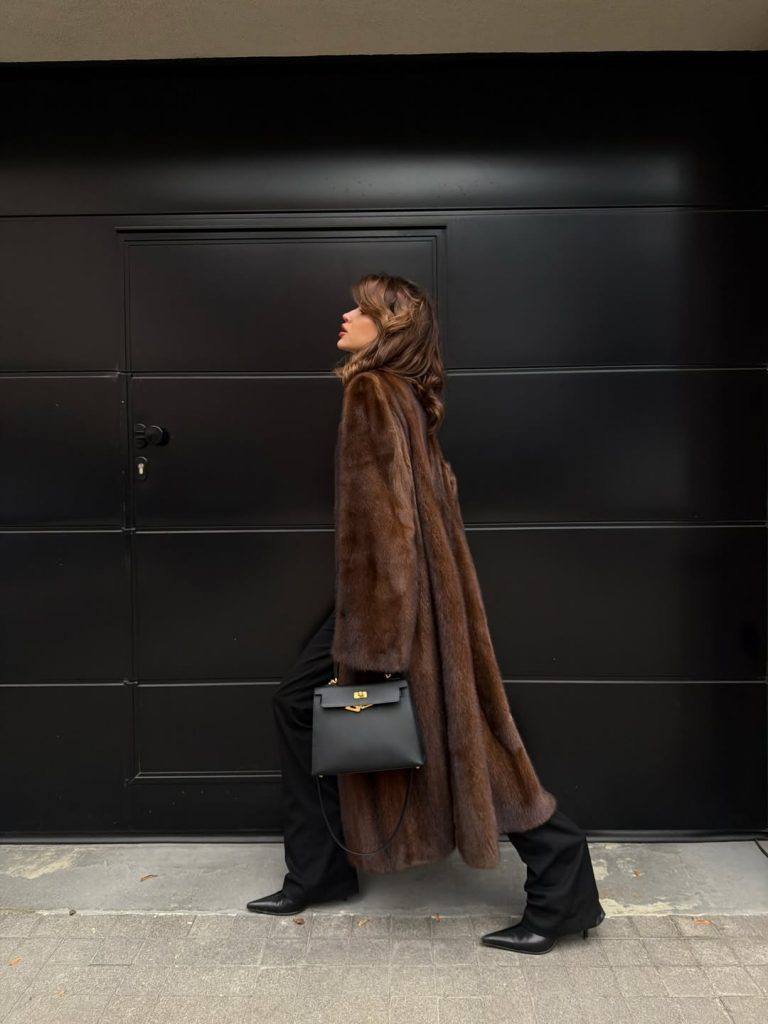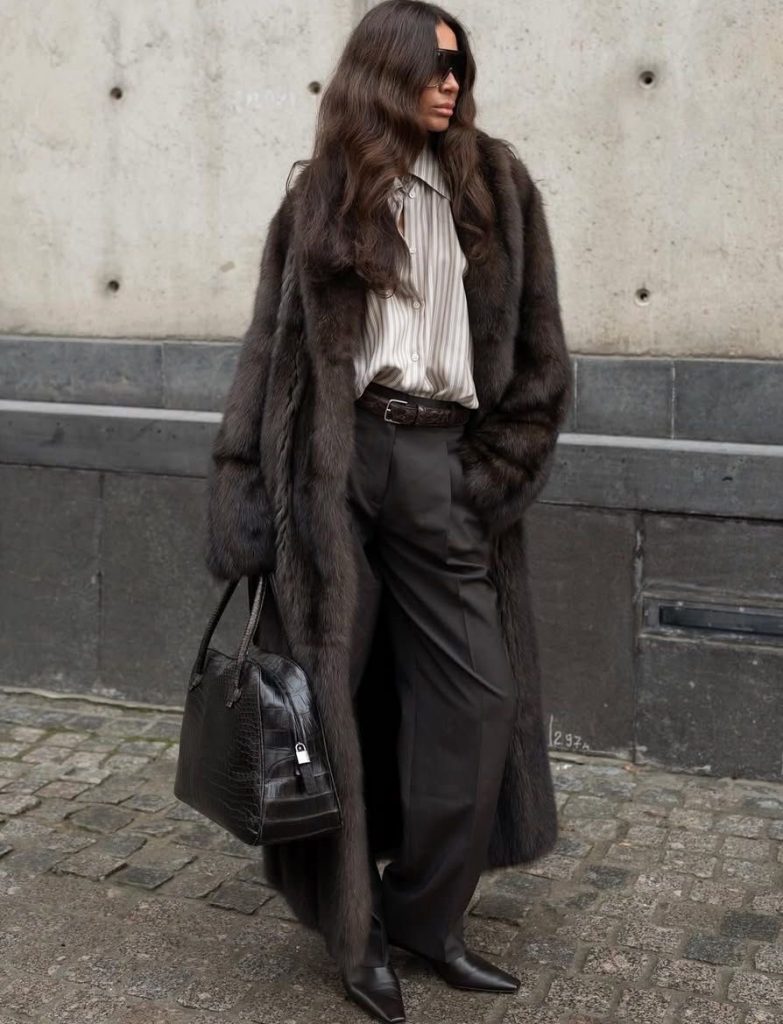 Монохром действительно решает почти все, когда речь идет о мехе. Образ, выстроенный в одном цвете, мгновенно собирает фактуру и делает ее визуально дороже. Мех сам по себе объемный, а монохром работает как рамка, которая этот объем успокаивает и структурирует. Черный, шоколадный, молочный, графитовый – все эти оттенки позволяют меху выглядеть цельно и уверенно, без ощущения перегруженности. Особенно это заметно на искусственном мехе. В многоцветных сочетаниях он часто начинает спорить сам с собой и выдает свою природу, тогда как в монохроме выглядит убедительнее и благороднее.