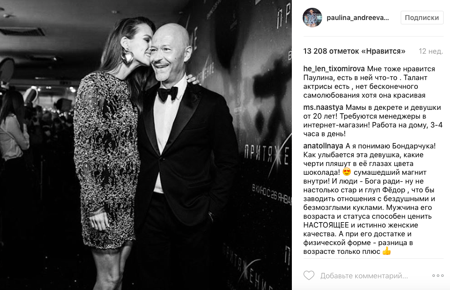 Паулина Андреева (28) и Федор Бондарчук (50) редко радуют нас совместными фото, но день рождения режиссера (да еще и юбилей, пятьдесят лет)-повод важный.