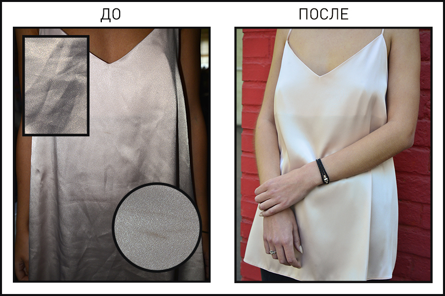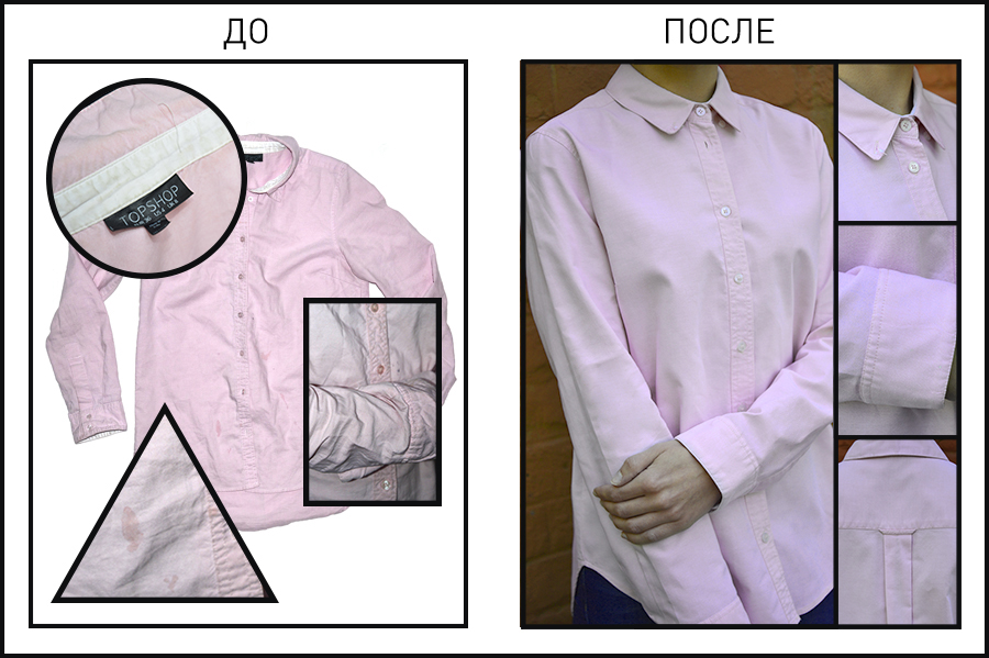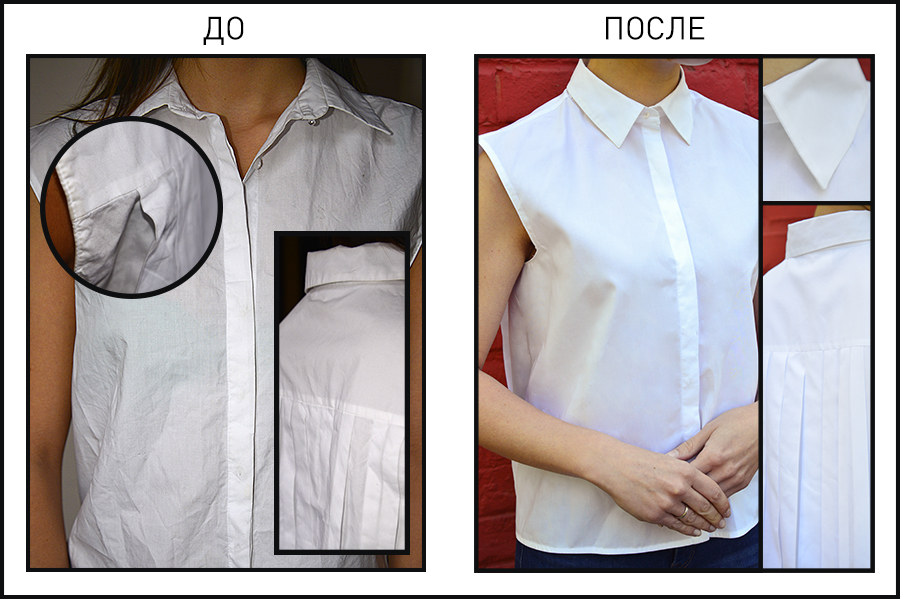Белая рубашка с плиссировкой на спине, которую совершенно невозможно было прогладить в домашних условиях, теперь выглядит идеально.
