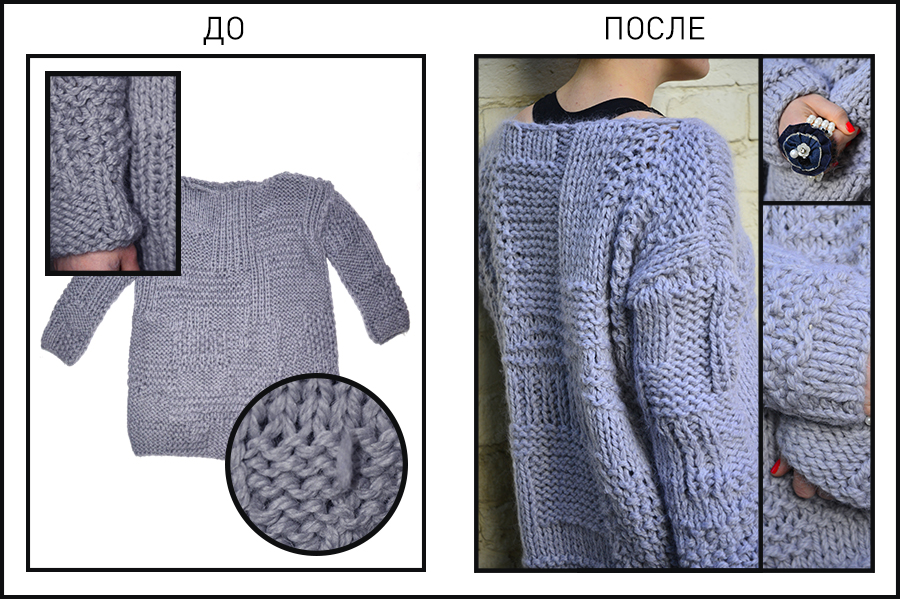 Свитер. Шерсть, из которой он связан, пушится, потому вещь оставляет следы на любой одежде, а если его хозяйка надевает свитер как платье, то уже через 10 минут колготы становятся похожими на вязаные гетры. После химчистки свитер выглядит как новый, вернулась прежняя форма, ушла растянутость. Но можно ли его носить? Снова эксперимент: надеваем свитер с черными брюками. «На брюки прилипли две маленькие пушинки, – говорит его хозяйка, – и это не сравнится с тем, что было раньше».