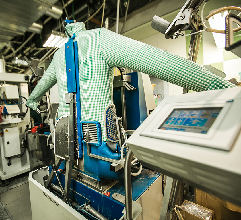 - Даже рубашку самому правильно не погладить. На гладильной доске нет специального устройства, которое позволяет прогладить рукав по кругу без линий. А мы используем пароманекены. Также мы надеваем на воротник специальную стойку, чтобы он не заламывался и оставался круглым.