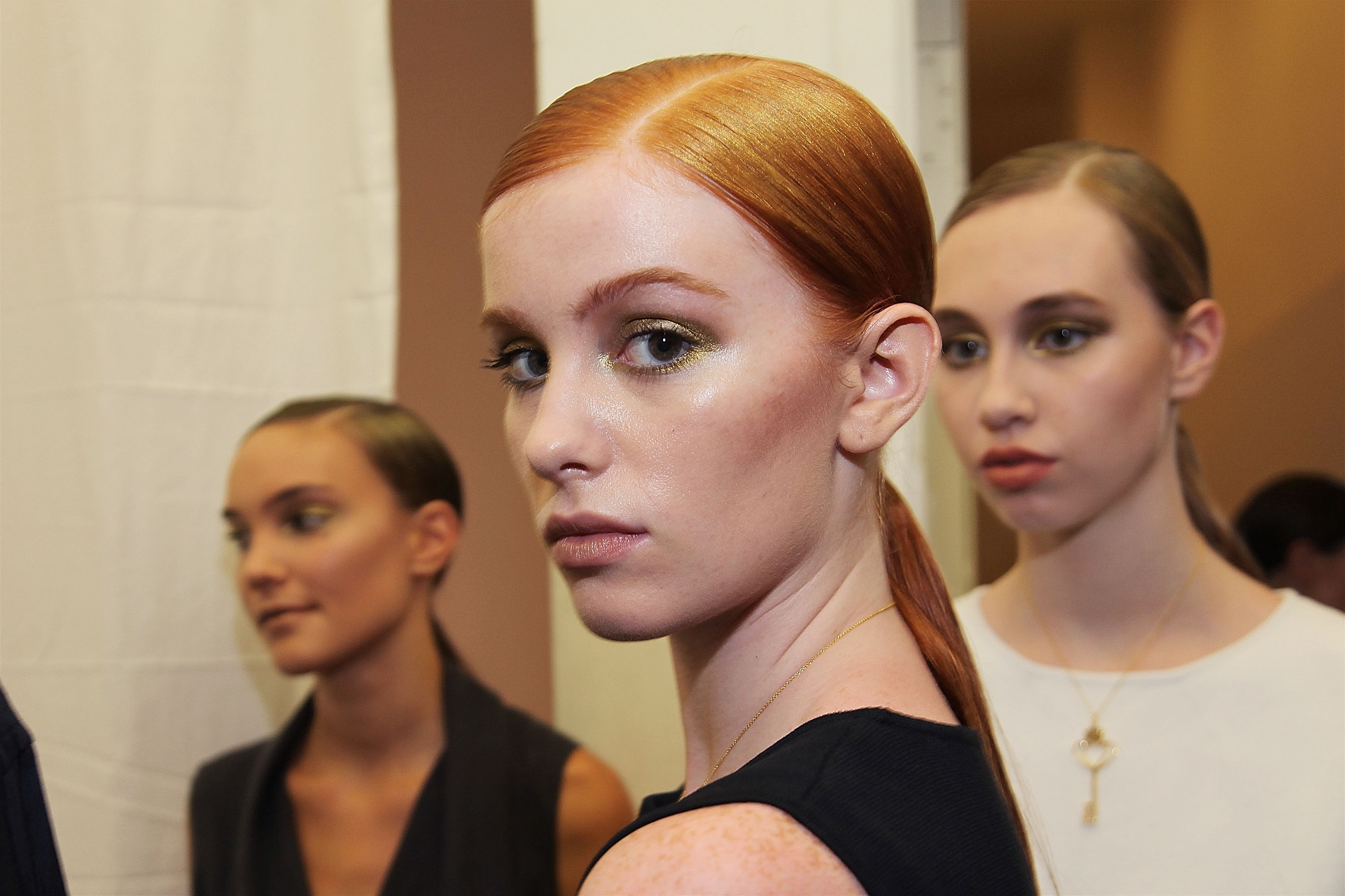 - Убедись, что ни один лишний волосок не выбился из забранной назад шевелюры, и закрепи все лаком.