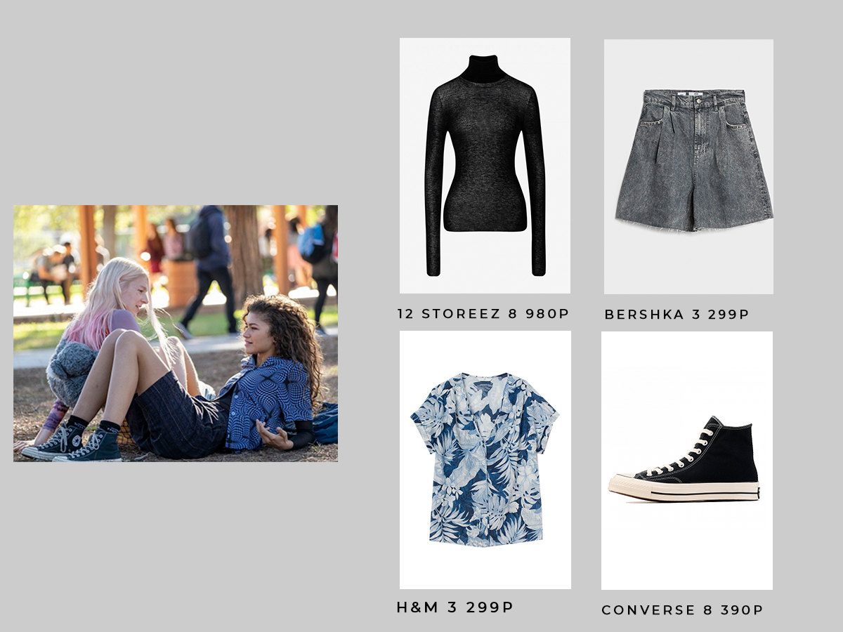 Кеды, водолазка и рубашка — простой и стильный образ из «Эйфории». Смотри, как его повторить.