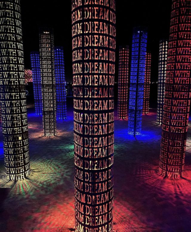 Главной темой фестиваля 2022-го стали «Сны наяву». И, конечно, все многочисленные павильоны, инсталляции и наряды гостей будут посвящены именно ей. Расшифровка концепции гласит: «преображающая сила снов, как в прямом, так и в переносном смысле, которая воздает должное мечтателям». «Горящий» неоновый человек, небесный храм архитектора из Колорадо Лоуренса Ренцо Вербек, статуя обнаженной женщины «Гайя» скульптора Марко Кокрана или Осенний шпиль Эрика Кулиджа – инсталляции фестиваля напрямую отражают его концепцию на границе сна и реальности.