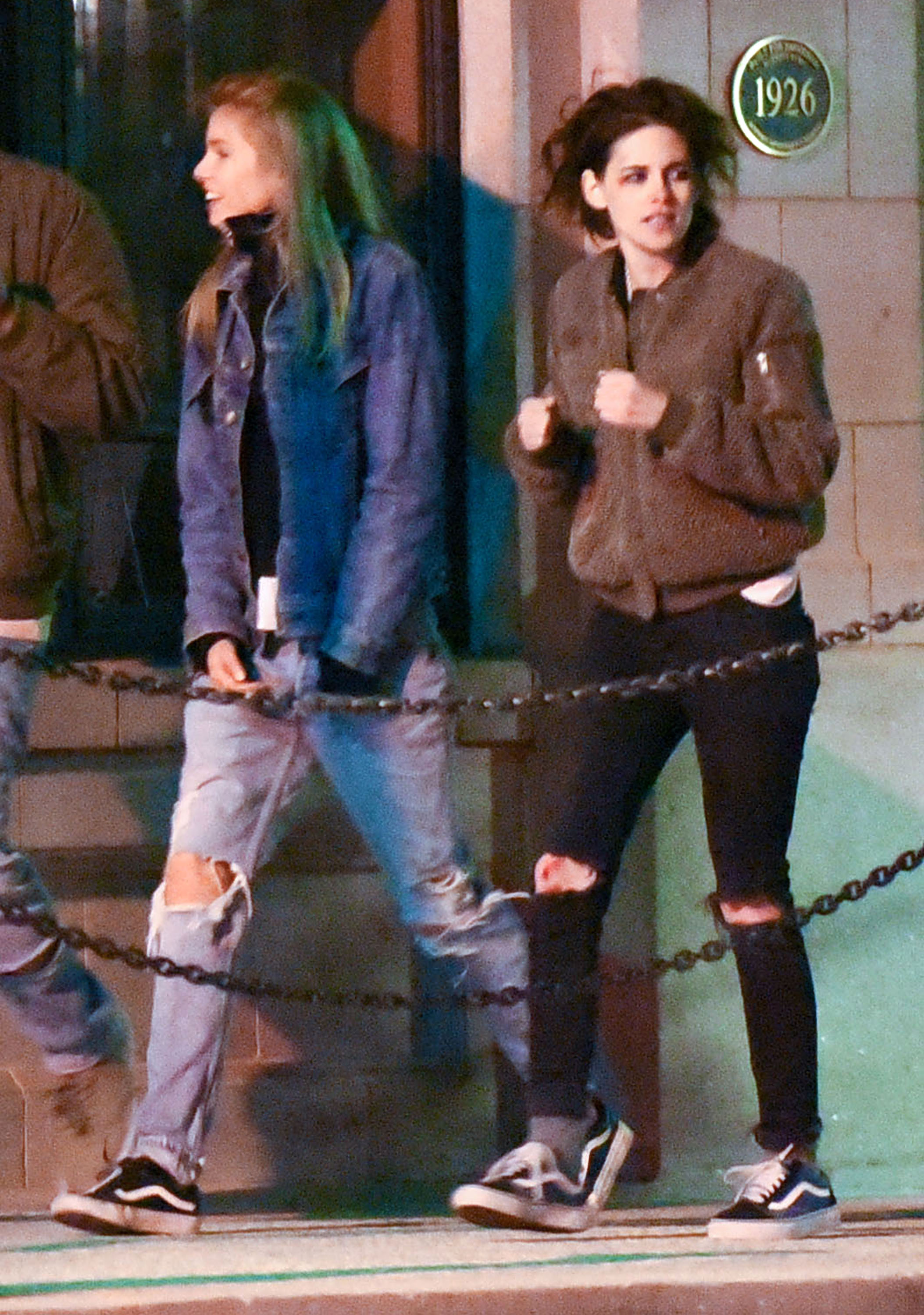 А вчера фотографы подловили звезд на выходе из клуба в Голливуде, и позже- утром- в супермаркете недалеко от особняка Стюарт.