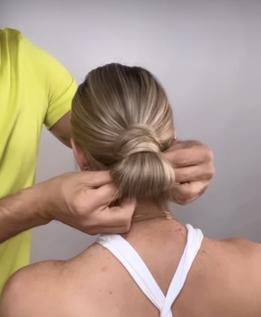 Первое, что нужно сделать, – это определиться с высотой прически. Она будет на уровне шеи или на макушке? После этого переходи к главному: