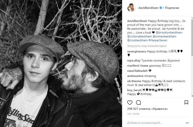 Ну а сегодня счастливые родители поделились милыми фото с виновником торжества. Дэвид (42) выложил в свой Instagram забавный снимок с Бруклином и написал: «С Днем Рождения, взрослый мальчик…Так горжусь тем, каким человеком ты стал… Будь страстным, будь гордым, будь скромным, а главное будь собой… Люблю тебя Bust».