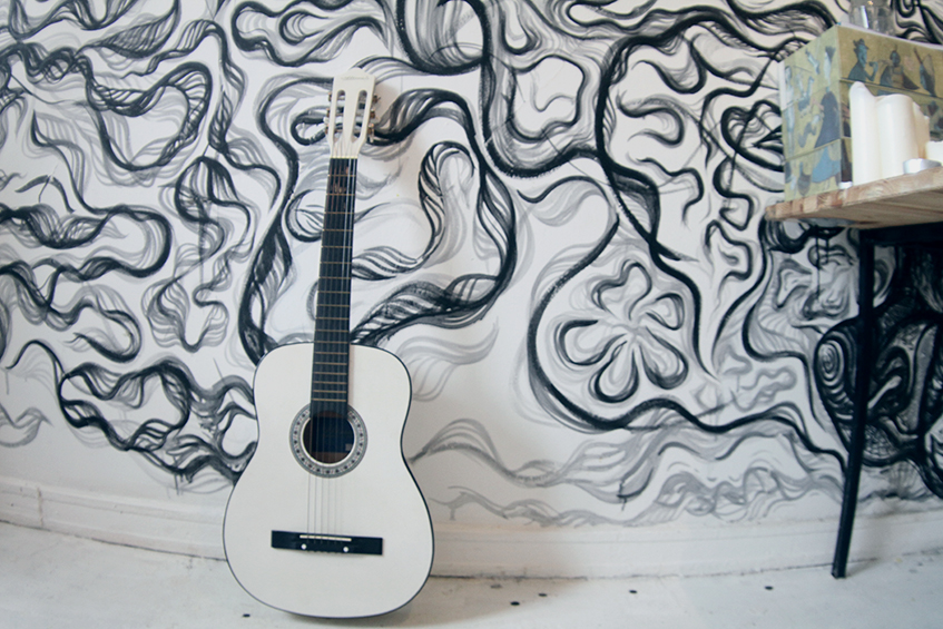 Предваряя подробный рассказ о моих поисках, скажу, что уже неделю живу недалеко от Таганки, в жутко-интересном месте. Только вот просто комнатой это не назовешь, скорее, пространство, которое было спасено от прозябания в виде склада прежним жильцом-дизайнером. Он оставил мне парочку стильных светильников, столы и практически портал в другой мир через таинственный лес, нарисованный на одной из стен. Но обо всем по порядку.