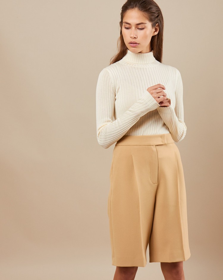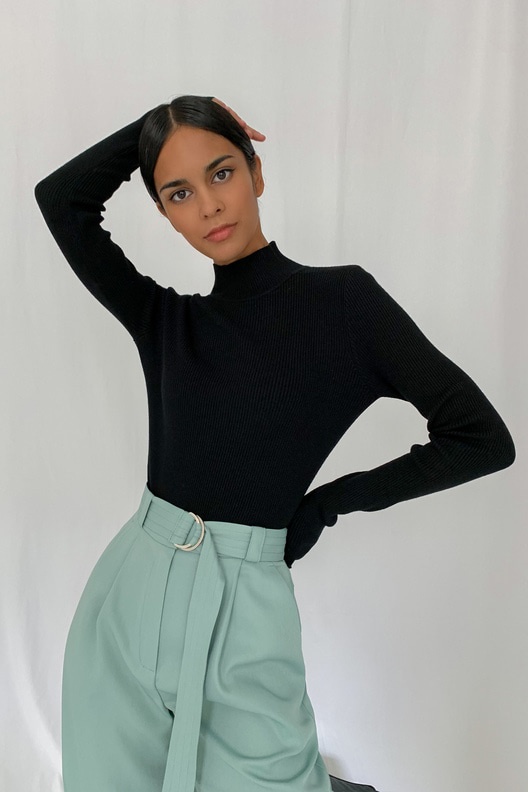 Однотонная водолазка или свитер с горлом очень пригодятся тебе в холодное время года. Выбери нейтральный цвет, который ты сможешь надевать с юбкой, брюками и джинсами.