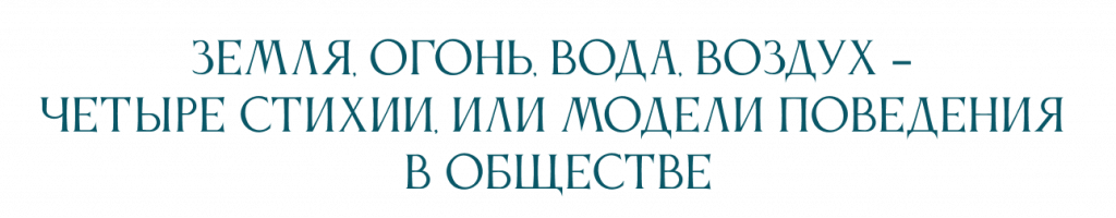 В каждом человеке преобладает одна из стихий. Четыре элемента – не столько ярлыки, которыми можно описать личность, сколько способ проявления подлинной натуры в том или ином социальном пространстве.