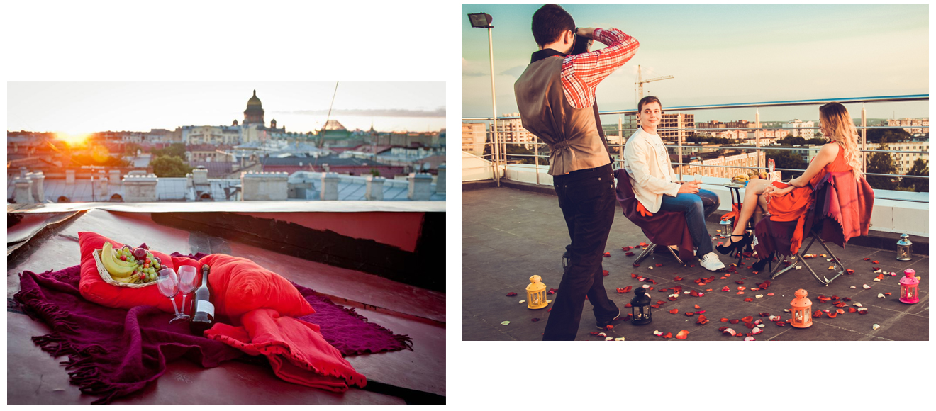 Почему бы тебе хотя бы раз не устроить ему свидание самой? Мы уже рассказывали о сервисах, которые предлагают организовать романтический ужин для влюбленных прямо на крыше дома! Компания Rooftour, например, обещает всем желающим обзорную крышу в центре Москвы с видом на Кремль и набережную, багровые лучи заката, ускользающее легкое дуновение ветерка, романтическую музыку и, конечно же, вашу вторую половинку рядом. Это ли не настоящая романтика?