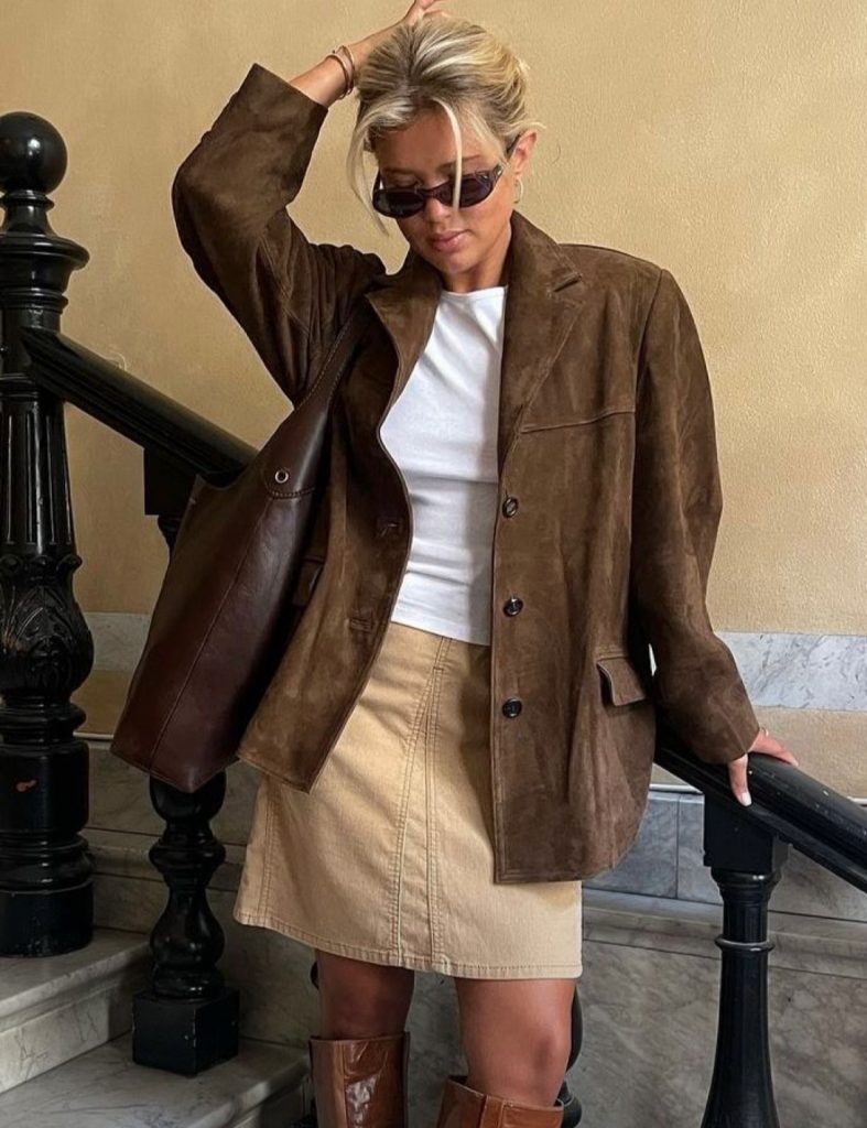 В этом сезоне модные инфлюенсеры рекомендуют нам отложить в сторону любимые кожаные и классические жакеты и сделать выбор в пользу трендовых замшевых вариантов. Сегодня фэшн-блогеры выбирают модели в шоколадном оттенке, который не покидает ряды тенденций уже несколько сезонов. Подобные жакеты были представлены на показах Miu Miu, Prada, Gucci и других брендов, так что сомневаться в их актуальности точно не стоит. Смотри, какие варианты выбирают герои стритстайла и с чем они их носят.